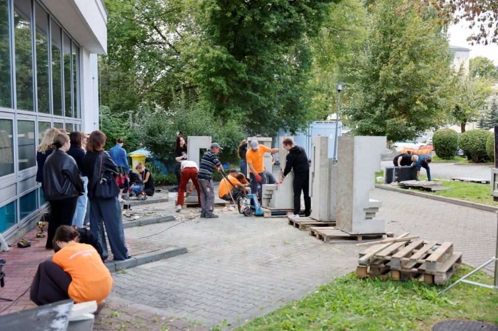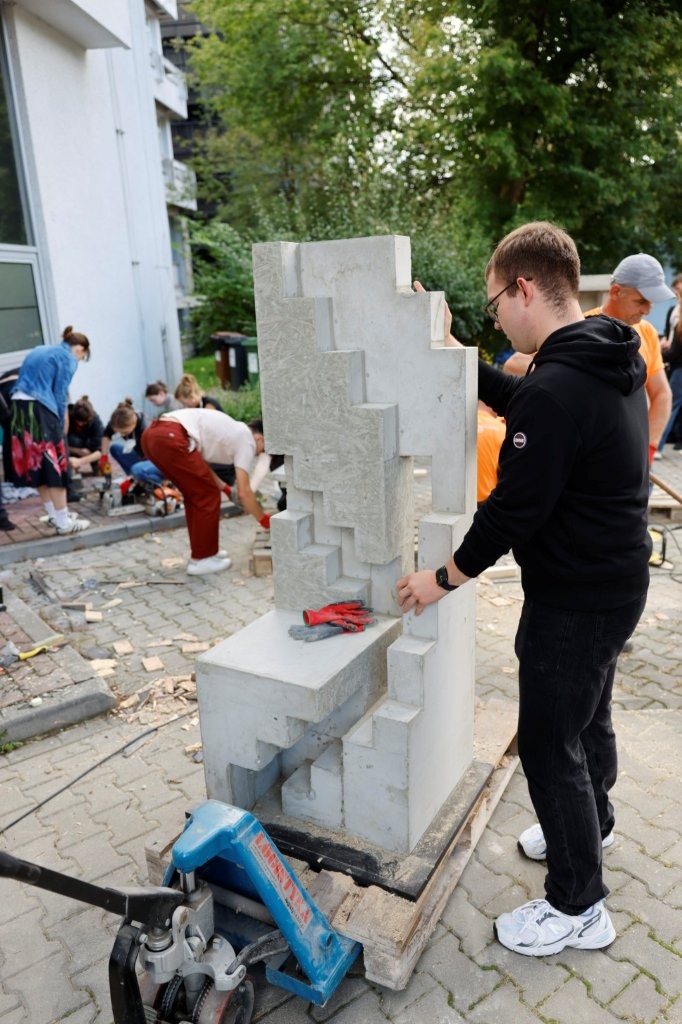 Przypomnijmy, że w czwartym dniu warsztatów, 18 września ok. godz. 14, szalunki „Tronów Rektora” zostały wypełnione mieszanką betonową wyprodukowaną i dostarczoną przez firmę Dyckerhoff Polska.